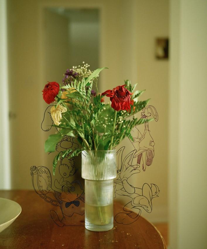 So, these photographs start to form a narrative in their seriality, and the added element of drawing makes them read more playfully. The gesture of adding drawing to a photograph conjures an idea of writing it differently.