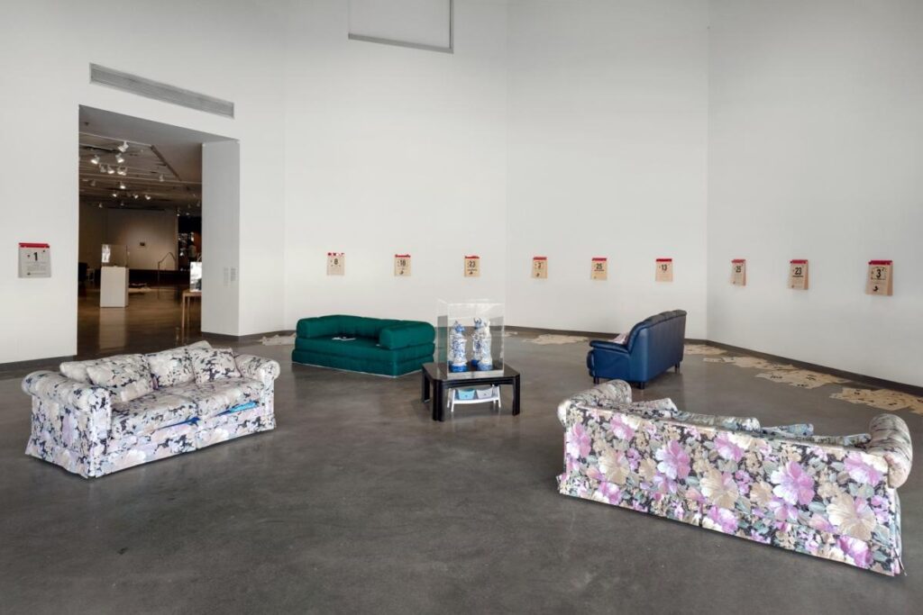 I asked Lam what it’s like for her to work inside of cooperative relationships: “Every collaboration is different. I think what I like about collaboration is what I like about art. It’s following the signs and what the world presents to you. Like in the story of making the Richmond show, you told me about the library and the Dr. Lee collection. That’s a sign.” Lam is referring to her incorporation of selected objects from the Richmond Public Library’s Dr. Kwok Chu Lee collection into the RAG exhibition. Donated by the Master Fung Shui practitioner, scholar, and author, the collection consists of approximately 47,000 Chinese language books and objects. Lam had works from RAG’s permanent art collection hung in the library, making them available for loan to residents of Richmond, to strengthen the relationship between the library, the gallery, and their publics. “HaeAhn suggests talking to a Fung Shui expert. Another sign.” The inaugural and final works of the exhibition were shaped by a reading with Fung Shui expert Sherman Tai, who advised adding a water feature and live plants to cultivate the Fung Shui of the space. HaeAhn and Lam built a water fountain that overshot its basin out of Home Depot materials—as if performing the duality of empowerment and inadequacy that is survival under late-stage capitalism, or “doing it for ourselves.” The last objects in the exhibition were poppy plants, a reference to the British Empire’s responsibility for the opium trade and its attendant epidemic of addiction. “It unfolds when other people present you with things you wouldn’t find yourself. They give you signs, markers, new paths. There’s an element of it that’s not based on what you think you want or want to do. It’s shaped by the context—the curator, the gallery. That’s the value of it and maybe it’s what’s important to respect about each collaborator, that they’ll allow you to find a new path. It’ll be unexpected. It’s boring to predetermine [what the work will be]. It doesn’t actually express what life is like.”