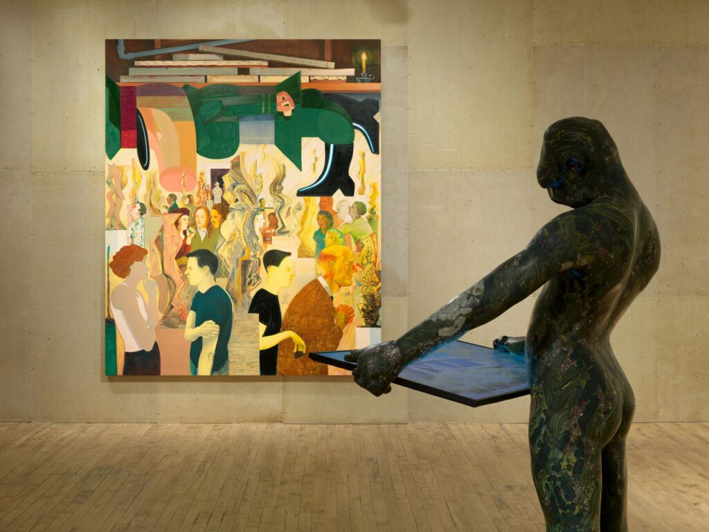 The work for this show began with the painting that has a giant pig floating above an art opening, Archangel (The Visitors) (2024), which I made before Trump was re-elected. Making that painting at that moment was important, because it’s about what I thought might happen—and what, eventually, did happen. It’s also a painting of my world here in New York. There’s an art opening, a lot of my New York friends are there in it, and there’s some extremely ugly figures in it as well, which is also true to life. It’s often like, here we are, at the same opening as this guy. In the art world, we traverse this universe with that kind of feeling all the time, like: I don’t know who all is in the room. When I was first offered to make STY I knew that I needed to get that painting back. I wanted it to be the anchor of the show.
