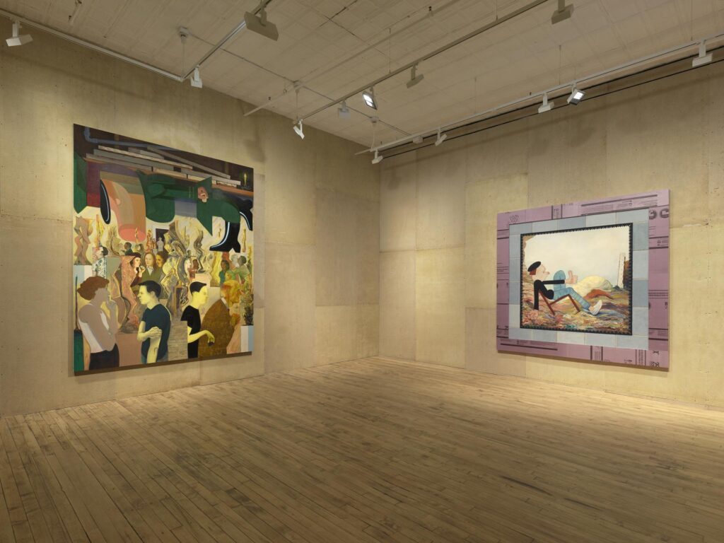 The title, STY, suggests a group or crowded space, which we see in paintings like Archangel (The Visitors) and The Auction. Two of the other paintings show artists alone in their “studios.” What role does isolation or solitude play in STY?