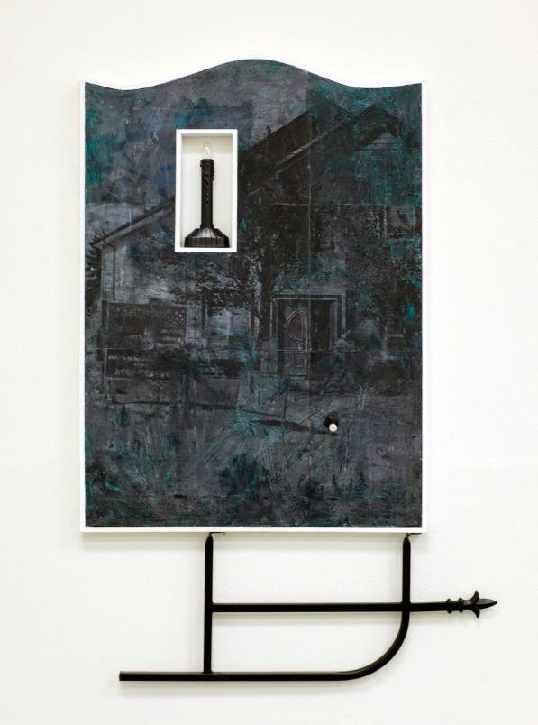 Among other things, Inspirational Stones hosted a sculptural concoction that included everything from a floor vent, repurposed speaker cabinet, a gothic-inspired railing vestigial, oil-scented humidifier (which spewed its aura around the piece), a fake half-burnt campfire, and window blinds that lined the cabinet, beaming out soft orange light. The cherry on top of this meandering assemblage was a piece of Esty-inspired home decor, the word “Love” in bolded cursive, laser-cut from varnished MDF. Wiebe mish-mashes a kind of self-preservation shrine to cozy up to in an apocalyptic scenario not far from the one outside of our windows today. It is a surreal simulation that professes an oasis of sanity. It verges on absurdity, but that’s all we got in a world riddled with endless doubt. There’s an allure to somehow keep believing in the grand seduction of inspirational messaging, self-help literature, strength crystals, a rock that has “Peace” engraved on it, or just keep filling our shopping carts with scented humidifiers until a new sense of sanity emerges. In the face of an ever impending doom, the collection of work in Inspirational Stones, intimates with a deadpan wry voice that says: ‘sure, you do you, whatever gets you through the day’. For Wiebe, unsurprisingly, humour is a central part of this. Most of his new objects and spatial arrangements discursively use the delirium of tragedy to tease out the many—often seemingly irrational—ways we cope, the new habits we develop, and how the grid of consumer culture makes this all the more complicated.