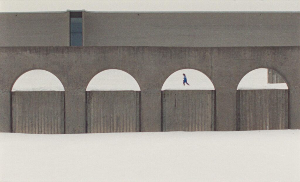 Well, that’s right, exactly. That again comes back to this obsession with the individual and the active protagonist. You know, the idea of the protagonist as an individualistic figure, and the camera supporting that. You know, when I speak, the camera cuts to me. When you speak, the camera cuts to you and so forth. I really liked this interest in the person who is listening. In a lot of films from that era, sometimes the camera moves away from the center of the action and looks at something adjacent. Like in Nama-ye Nazdik, the opening sequence is actually very dramatic—it’s the moment they go to confront Sabzian. He’s taken away by the police. It’s a very dramatic incident, but the camera stays with this taxi driver who has driven them there. He’s just waiting outside. The camera stays with him. This is something that I find so beautiful. Sometimes, you’ll hear a conversation, but you’ll only see the building in which that conversation is taking place. You might hear it very close, but you’re only seeing the building from a great distance. You don’t even see the characters at all. These are things that I find very interesting, this idea of the peripheral gaze. And, this was something that we wove into the fabric of the story [of Universal Language] itself. The characters walk away from dramatic moments, and they explore some other phenomenon. It’s also a way of tracing the interconnectedness between all of the characters. This might be the center of attention in one life, but in another life over here, something else is the center of attention. It’s a way of weaving it all together. I think it’s also a liminal zone, the idea of moving from point A to point B, and that space between.