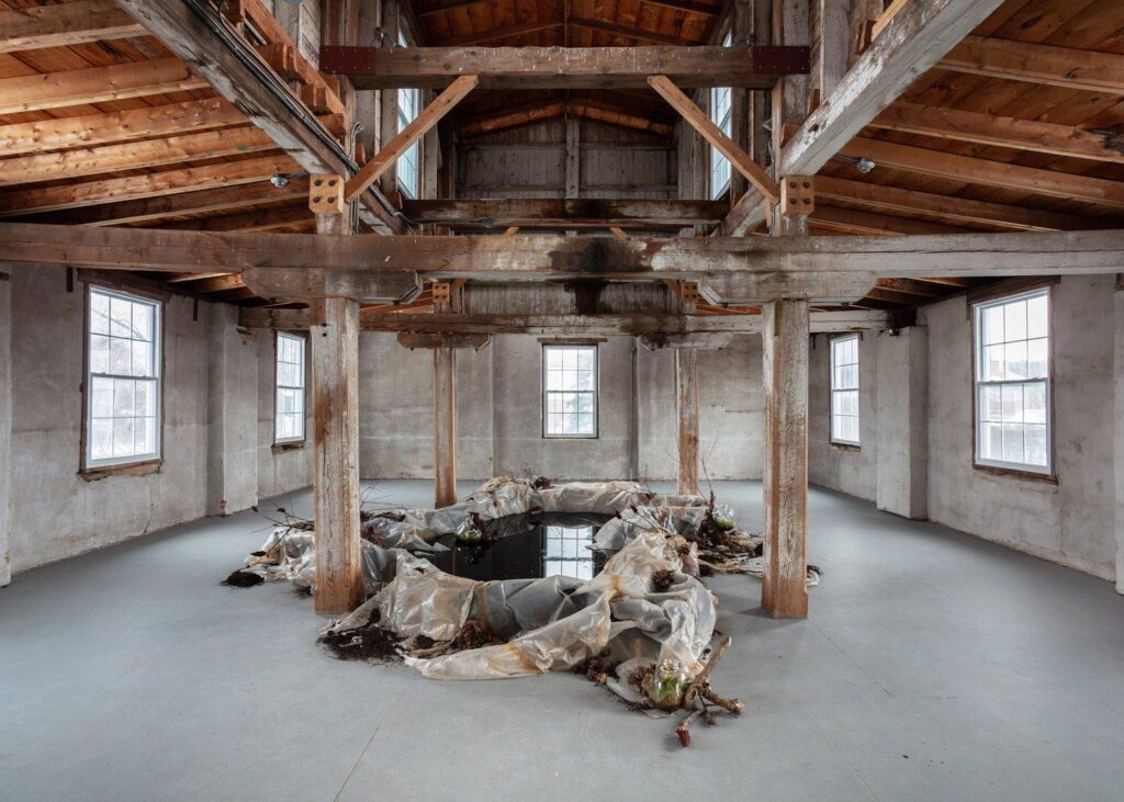 A lot of my work is modular and can adapt to various spaces. Anoxic Memory, the exhibition I presented at the Visual Arts Centre in Clarington, Ontario was definitely created for that space, but the “bog eye” I created on the third floor; that’s an example of something I’ve reused. I used the same wood that was part of the greenhouse structure in Rat Plastic Wood. I do tend to reuse the body from past artworks to make new works as much as possible.