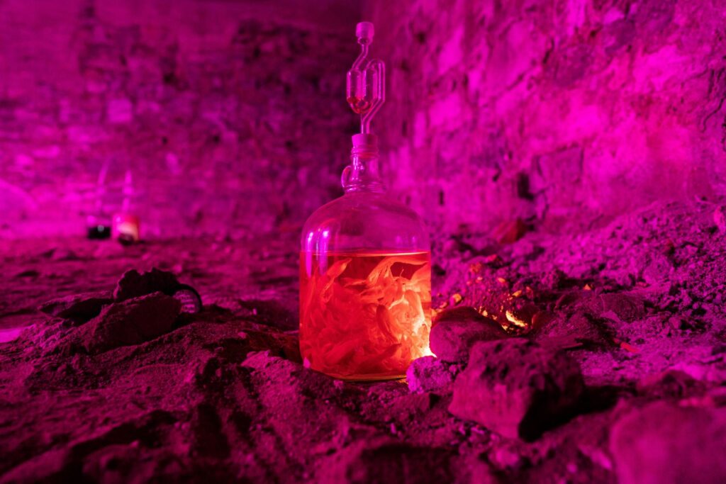 MS : Your description of what you’re imagining as my working space to be is very accurate. Introducing edible components into my work started around 2021, so in several places pandemic lockdowns were still in effect. With Rat Plastic Wood, this tension between purity and contamination was very much present in a lot of peoples’ minds. Sharing fermentations with people was interesting in that context. We had tiny, disposable sterile cups to pour home-made ditch lily wine into; we’d be outside the church wearing masks, passing around these cups without getting too close. Yet everyone walked away with a little piece of the exhibition in them. It was a really beautiful community-building thing, where everyone involved had these same microorganisms inside of them.