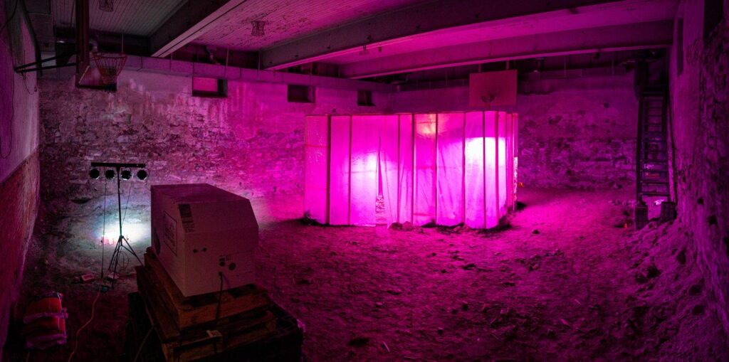 The space that was in the side building of this church was built ages ago in the 1800s, and used to be a gymnasium. The floor was ripped up and it was just a basement with dirt floors and high ceilings. It became the perfect spot to set up a temporary studio space; there was no one in there anyway. It became the setting for everything. I was taking samples from the walls, looking at them under the microscope. I wasn’t yet thinking of doing an installation there, I was more invested in the material research. Being in that setting for 6 months really informed my thesis work. Ultimately it’s the place where the installation always should have been shown, but it wasn’t designed to be in that space. Originally, the pieces were made for my thesis, which was presented at the University of Waterloo Art Gallery in a classic gallery environment. The reason I showed it again in the church basement was because the pandemic made it so that no one could see it in the gallery. Now that space is gone.