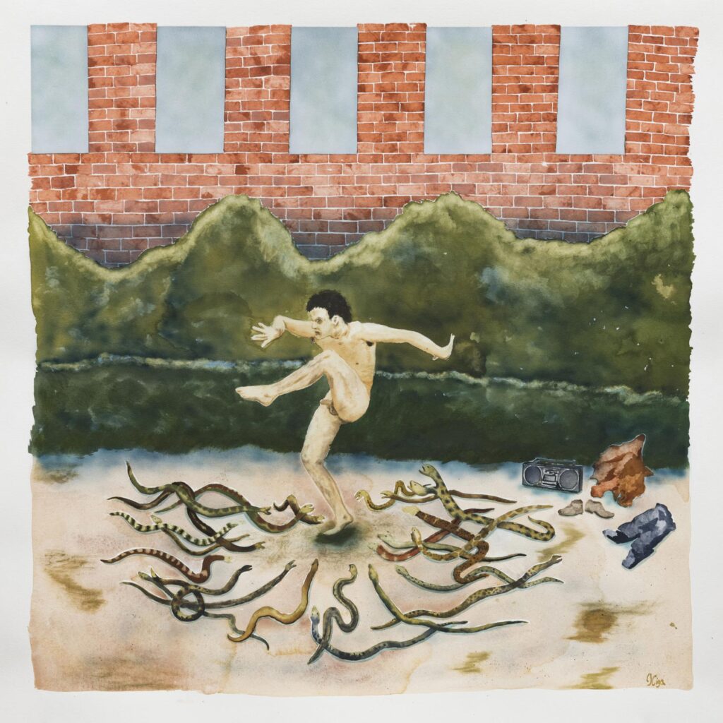 Apart from a foundation year at NSCAD in 2011–12, Tisiga is self-taught. “Somehow, the universe cobbled together visibility for me,” he reflects. I first encountered his work at the Parisian Laundry in Montreal in 2017, the same year he received the REVEAL Indigenous Art Award. I remember being fascinated by the banal yet surreal scenes in his watercolours and trying to unravel the sense of emptiness and detachment in the figures he depicted. They seemed both human and ghostly, present and absent, familiar yet utterly foreign.