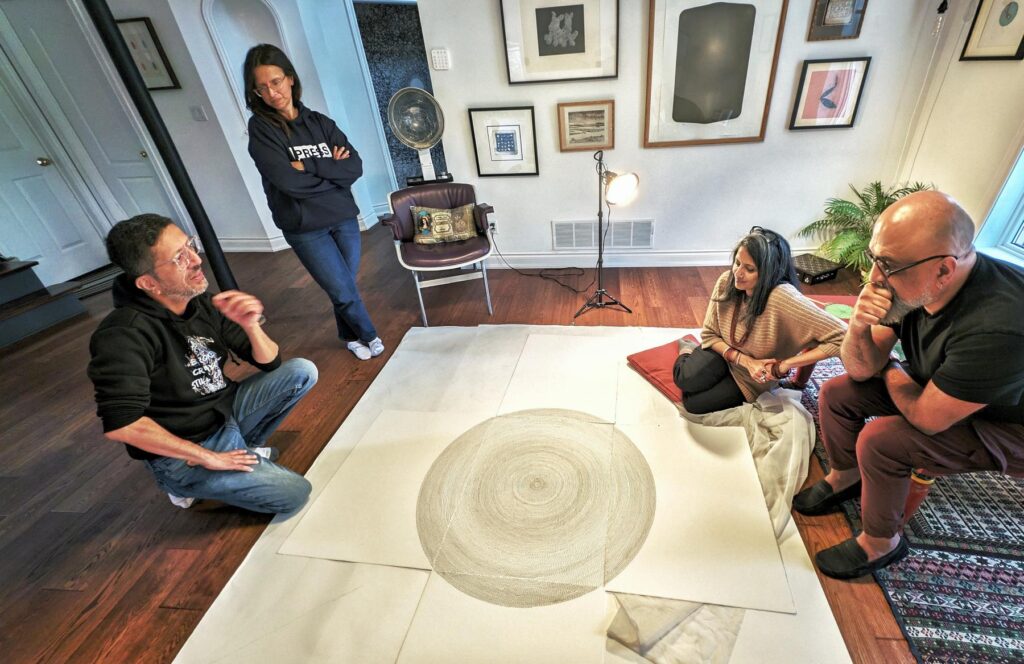 Tazeen Qayyum is a Pakistani-Canadian artist based in Toronto. She was trained in the South Asian and Persian traditions of miniaturist painting before she began the mixed-media practice which she sustains today. During the month of Ramadan, I wanted to speak with her about what it is like to be a practicing Muslim as well as a contemporary artist working in Canada. I was also interested in her experience making work that is conceptually driven and shaped by culture and faith. For example, in her iconic archival ink on paper works, Qayyum repeats a word written in Urdu script to form concentric circles, which the artist inscribes through a repetitive movement that is prayer-like. The artist chooses words stemming from concepts found in her Muslim faith. Words like khayaal (care), sakoon (calm/peace), sabr (patience), zameer (conscience), yaqeen (certainty/belief), and fikr (concern/thought) have featured in her work, as well as more explicitly political words like brabri/bartri (equality/privilege), which the artist made in direct response to the 2020 resurgence of Black Lives Matter. Each word serves as a salve for present-day social issues facing our nations and communities. In her past work, she has memorialized the under-told histories of the India-Pakistan partition, a history in which she finds parallels with the current situation unfolding in the Middle East. As the war in Gaza rages on, Tazeen is working to find ways to take care of herself and her communities while continuing her commitment to making work that is reparative. In this conversation, we speak about working in a multilingual way and discuss what is lost in translation. The artist shares her preference for the term “Art of the Islamic World” over “Muslim Art” and “Islamic Art,” and reflects on her recent experience showing time-based media artwork in a Sufist context. She discusses how she has positioned herself in the art world when it comes to faith and culture, and why she was resistant to identifying herself as a “Muslim artist” or showing in faith-focused exhibitions. We also spoke about some of the unique challenges that artists who are Muslim face in Toronto and Canada, and how Canada might better support its Muslim artists and dismantle the myths of Islamophobia by putting into practice all of the rhetoric of “equity and inclusion.” I learned a lot from this conversation, and I hope you will too! Please note that the honorarium paid by the journal for this interview will be donated in full to the Muslim Food Bank, a registered Canadian charity that supports food security for Muslims in Canada. I encourage readers to donate too.