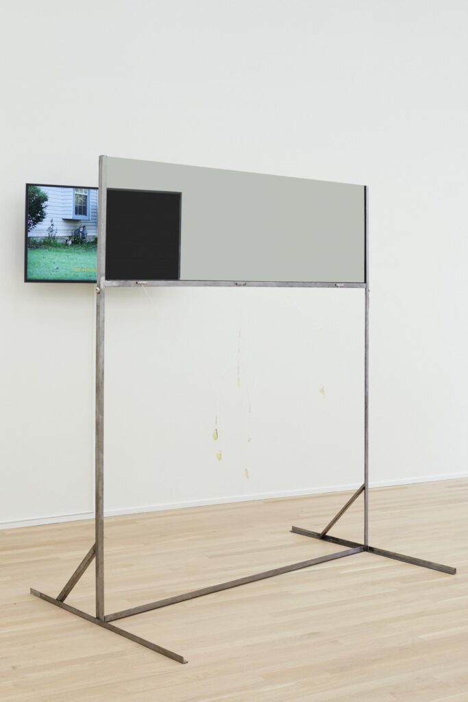 You know, this is something that has struck me as well because I do have these moments in which I step back and try to look at my practice and see what is there now versus what I may think is there or what was there. This is an inquiry I’ve been asking myself, where is performance used in my work now? I’ve concluded that for the time being my relationship with performance is a methodological one. I’ve been thinking about the architecture of an installation in relationship to the body of the viewer—a performative negotiation, if you will. Looking at the original cubicle design by Robert Propst—which was meant to create more dynamic and modular workspaces, not the confining ones that we identify the cubicle with today—the series Action Office Was Meant to Be About Movement (2019-ongoing), is about the question in performance concerning viewership and audience. Working with a privacy film that renders monitors opaque at specific angles, I’ve started this series of partitions that ask the viewer to reorient themselves in order to access the content on the screen. Working with this material challenges the viewers’ access to the moving image. I think of these architectural spaces as a training ground for dealing with agency and lack of access.