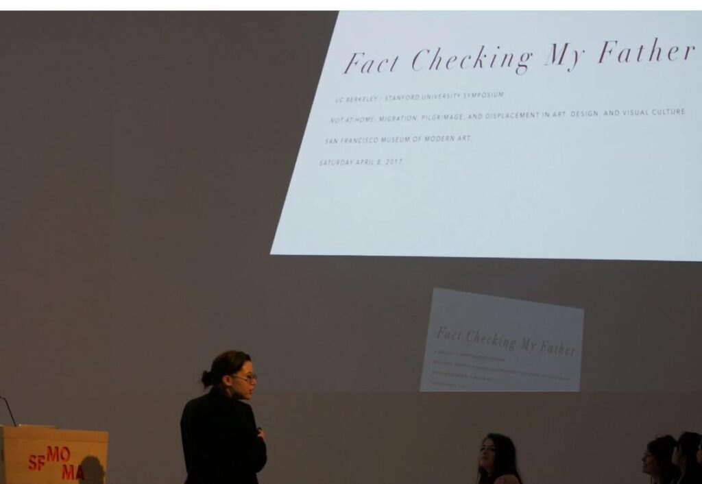 Fact Checking My Father, 2017 Lecture-performance, 2017. Presented at SFMOMA as part of the UC Berkeley / Stanford University Symposium–Not at Home: Migration, Pilgrimage and Displacement in Art, Design, and Visual Culture.