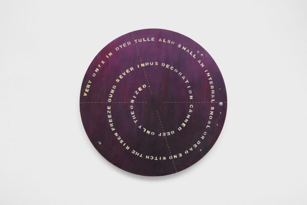 Where we can glean surrealist undercurrents in Louise Bonnet and Elizabeth King’s two-person show at the Swiss Institute or in Joyce Ho’s multimedia presentation at ShanghART in Shanghai, the living legacy of surrealism is particularly palpable in the work of Hannah Black. In HUSH MR GIANT at Arcadia Missa in London, Black leveraged the political potentials of surrealism toward an epistemological intervention. The artist transformed excerpts from the Universal Declaration of Human Rights (1948)—a speech act theoretically imbued with actualizing capacities—into nonsensical anagrams mapped onto circular canvases. These paintings imbued with a hypnotic quality recall the rotating discs in Marcel Duchamp’s Anémic Cinéma (1926). This method of disarticulation underscores the fundamental distortion of supposedly “universal” language within colonial systems.