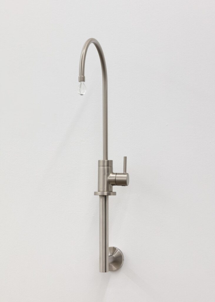 Klaassens seems to be reimagining a hyper-reality with smooth, metallic edges, though substantiated—fleshed out—with ordinary, organic objects. In such material contradictions, the once reliable divisions between nature objects and culture objects disintegrate. We live in an era captivated and defined by widespread collapse—both human-object, and environmental—that contemporary ecological theorist Timothy Morton deems “end-times.” The view is total sea seems to meditate on ways of interacting with, theorizing, and narrativizing human-object interaction in the end-times era of floundering bisections and merging of once diametric opposites. And this is the immediate relevance of Klaassens’ work: it helps us consider aesthetic responses to our ecological condition, with its synthesis of organic and synthetic material vaguely reminiscent of posthuman aesthetics, and its sustained consideration of water as primary resource of study. In each intimate detail of this exhibition, I felt that I was receiving a grammar lesson on the visual language of end-times, showing us how to frame and view—how to ultimately deal with—our immediate, discordant, material existence.