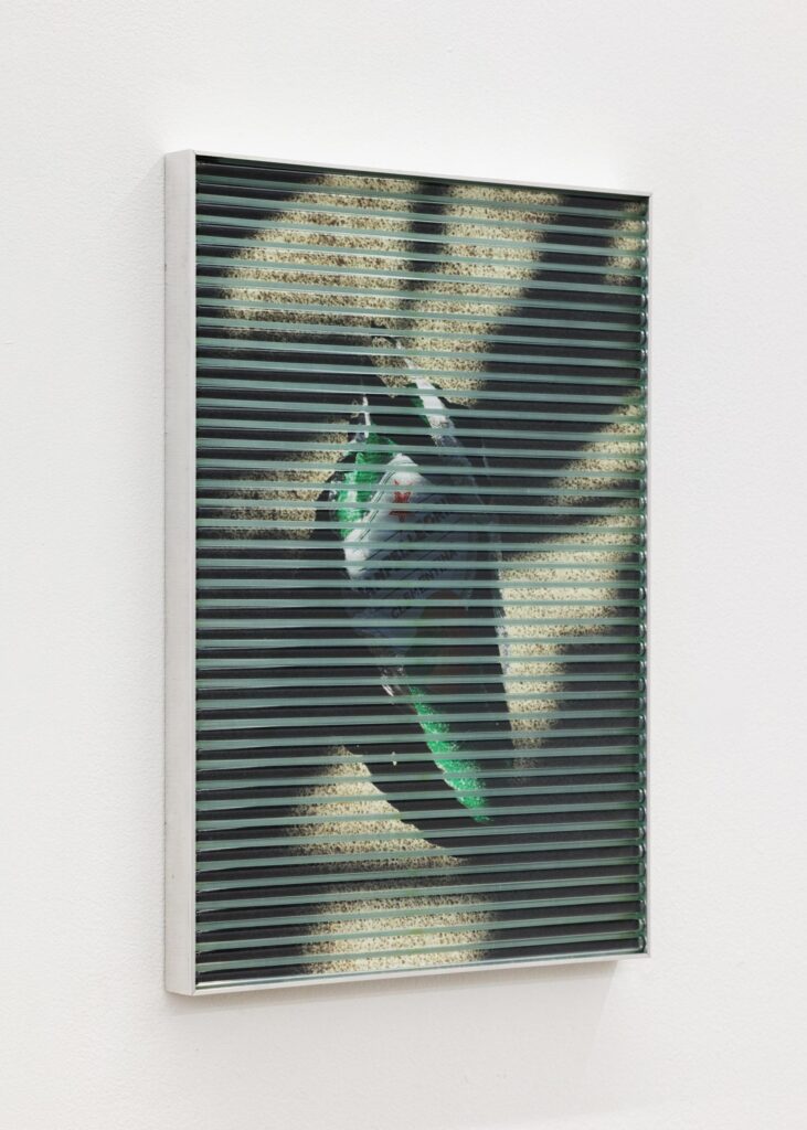 If the view is total panoramic sea—determined by horizon lines, waves, dorsal fins, iceberg tips, and other protrusions recurring in the work—we, as the audience, remain privy only to its surface. Below the surface, things go partially or wholly unseen. These complications of seeing expand what it means to be an audience. Take Clementina, for example, a sculpture where we observe a photograph of a discarded can of Italian soda on the beach through a slatted venetian blind of glass straws. Slices of the image are obscured. And further too in Thorn—a series of miniscule polymer clay sculptures in the shape of disembodied rose thorns. A shape that Danica Pinteric points out to be also that of a dorsal fin or the cusp of a wave—formally and figuratively representative of the “tip of the iceberg.” In these subtle, recurrent obfuscations, this collection of work underscores that the view is not total, not even half complete, and the parts that we see, breaking the surface of the water, come as “a sliver or a fragment removed from the greater whole”.1