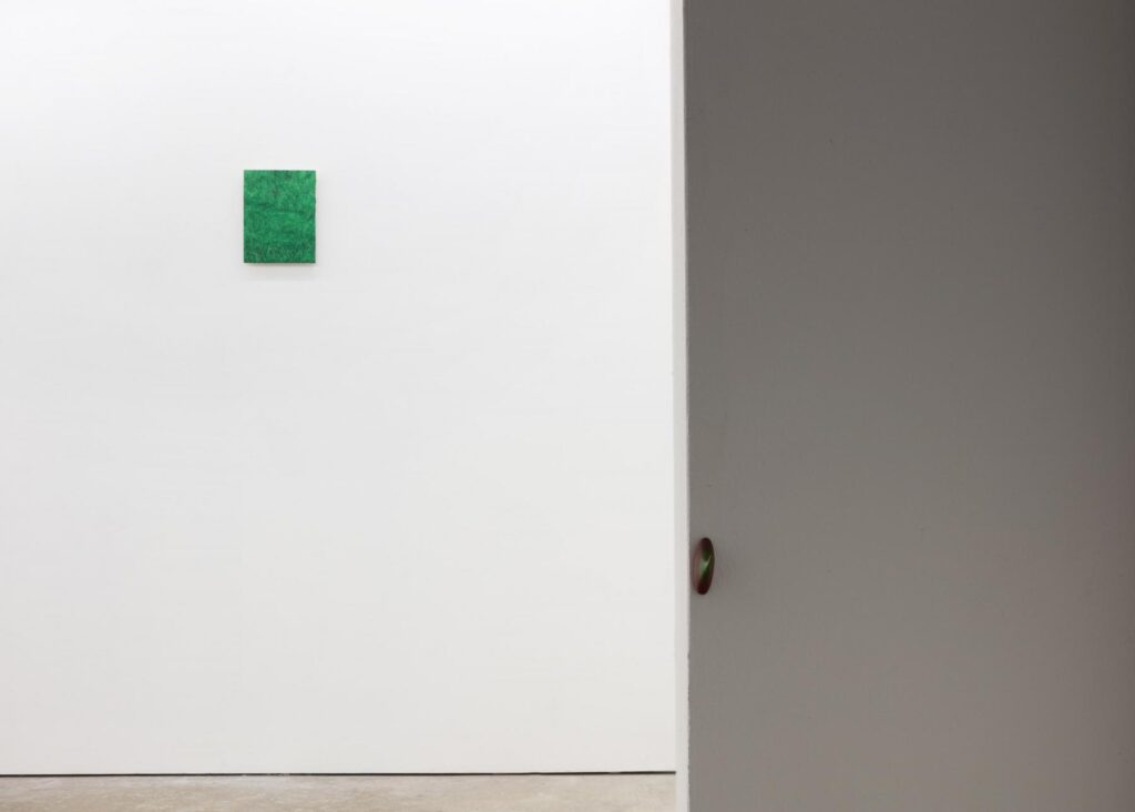 Monocropping—as seen in the microcosm of lawn care, but also on a global scale of resource extraction—is indeed a nauseating visual: it renders clear the act of scraping off the surface of the world, removing a dynamic ecosystem, and curating it to a particular aesthetic proclivity. Within Klaassens’ work, I see these two matted areas of grass as traces of this destruction. Like ecological footprints, the impacts of these two deflations are not immediately obvious but become so in the search for orientation—a horizon line from which to position oneself in the examination of this painting—landing instead only ever upon a subtle shift in topographic elevation; a matted-down impression. Even as I look away, this impression lingers. A ruddied afterimage pulsating in my retina—an afterthought developing in its wake. Grass leaves me curious about the relationships between creative practices, and environmentally extractive processes. In the aesthetic cultivation of both art and land, are stories, objects, and realities not inevitably uprooted? Or worse, buried deep beneath a sweeping gesture that leaves only the faintest traces of their once-presence behind?